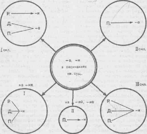 Поясняющих замечаний со стороны учителя требуют и написания типа рожь, ночь; режь, спрячь; беречь. Написание здесь ь не связано с произношением: после ч он избыточен, после ж противоречит произношению. Буква ь является здесь графическим уравнителем морфологических категорий: рожь, мочь, склоняются так же, как ель (рожью, ночью, елью), а нож, врач—как стол (ножом, врачом, столом); спрячь, спрячьте, режь, режьте “подравниваются” под кинь, киньте, а беречь — под кидать. В силу таких письменных аналогий принцип употребления здесь мягкого знака можно назвать принципом графико-морфологических аналогий. Иначе его еще называют грамматическим (Л. Р. Зиндер), граммематическим (Ю. С. Маслов), морфологическим (А. А. Реформатский).