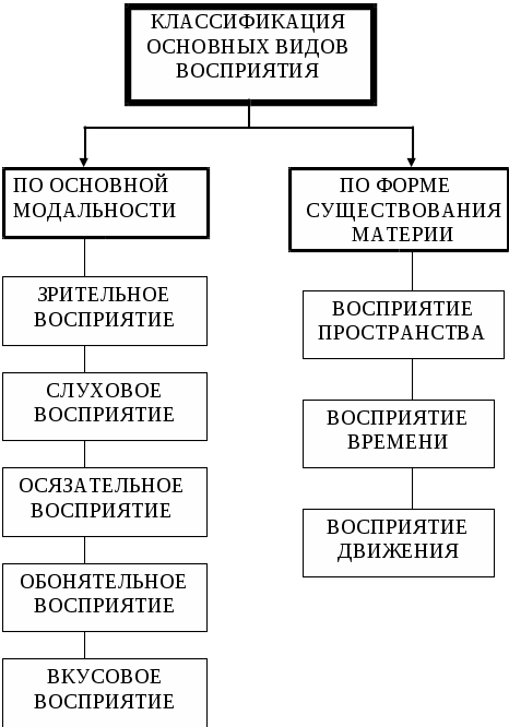 Классификацию основных видов восприятия можно выразить следующей схемой: