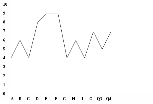 3. Результаты тестирования сына. Ниже представлены результаты детского варианта теста Р. Кеттела, выполненного Антоном. Как видно на профиле, наибольшее количество баллов подросток получил по шкалам В, D, Q4, что можно интерпретировать