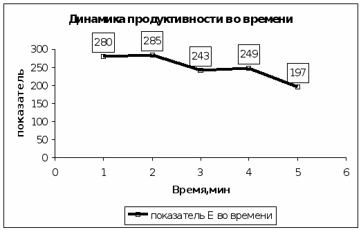 5. Определение устойчивости внимания (определяется по динамике продуктивности работы (Е) во времени):