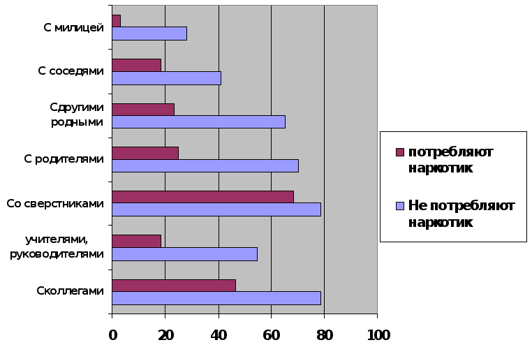 Гармонизация, оптимизация семейных отношений, отношений с родителями – необходимый атрибут профилактической работы. Уменьшение чрезвычайно эмоционального, болезненного, негативного отношения детей к своим родителям поможет снизить риск наркотизации среди юношества.