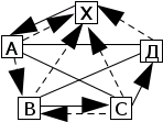 Допустим в отделе, состоящим из пяти человек, при помощи социограммы проводятся исследования межличностных отношений. В этом случае каждому работнику отдела выдается карточка с обозначениями всех работников этого подразделения. Рис. 4.