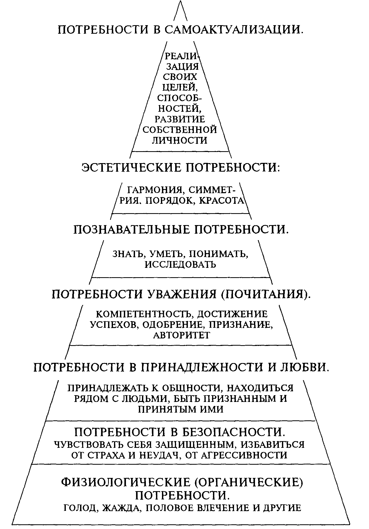 Пирамида (иерархия) человеческих потребностей (по Маслоу)