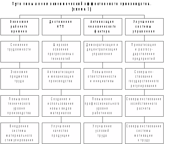 В условиях формирования рыночных отношений существенно расширяются возможности действия всех факторов повышения эффективности производства. Осуществляются структурная перестройка народного хозяйства, переориентация его на потребителя; модернизация важнейших отраслей народного хозяйства- промышленности, строительства, транспорта и связи на основе высоких технологий; преодоление отставания от мирового научно-технического уровня; продуманная конверсия военного производства; переход к смешанной экономике, в которой создаются на равных правах различные формы собственности; свободное развитие всех коллективных и частных форм хозяйствования; финансовое оздоровление экономики; органичное включение страны в глобальные хозяйственные связи. В результате этого сформируется регулируемое, цивилизованное рыночное хозяйство, которое явится действенным средством, стимулирующим рост производительности труда, повышение эффективности всего общественного производства, приумножение общественного богатства в интересах повышения благосостояния народа.
