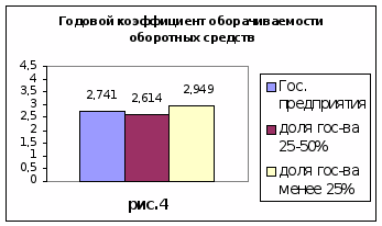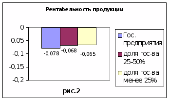 Как видим, по двум показателям (производительности труда и рентабельности) наблюдается монотонное повышение эффективности производства по мере уменьшения доли государства в уставном капитале; по двум другим (фондоотдачи и коэффициенту оборачиваемости оборотных средств) – предприятия группы А оказались на последнем месте.