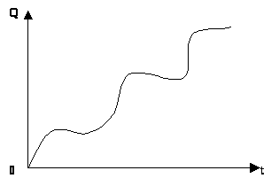 На графике по горизонтальной оси откладывается время (t), по вертикали — объем производства (Q). Возрастающая прямая ОА свидетельствует о постоянном экономическом росте и развитии рыночной экономики в целом.