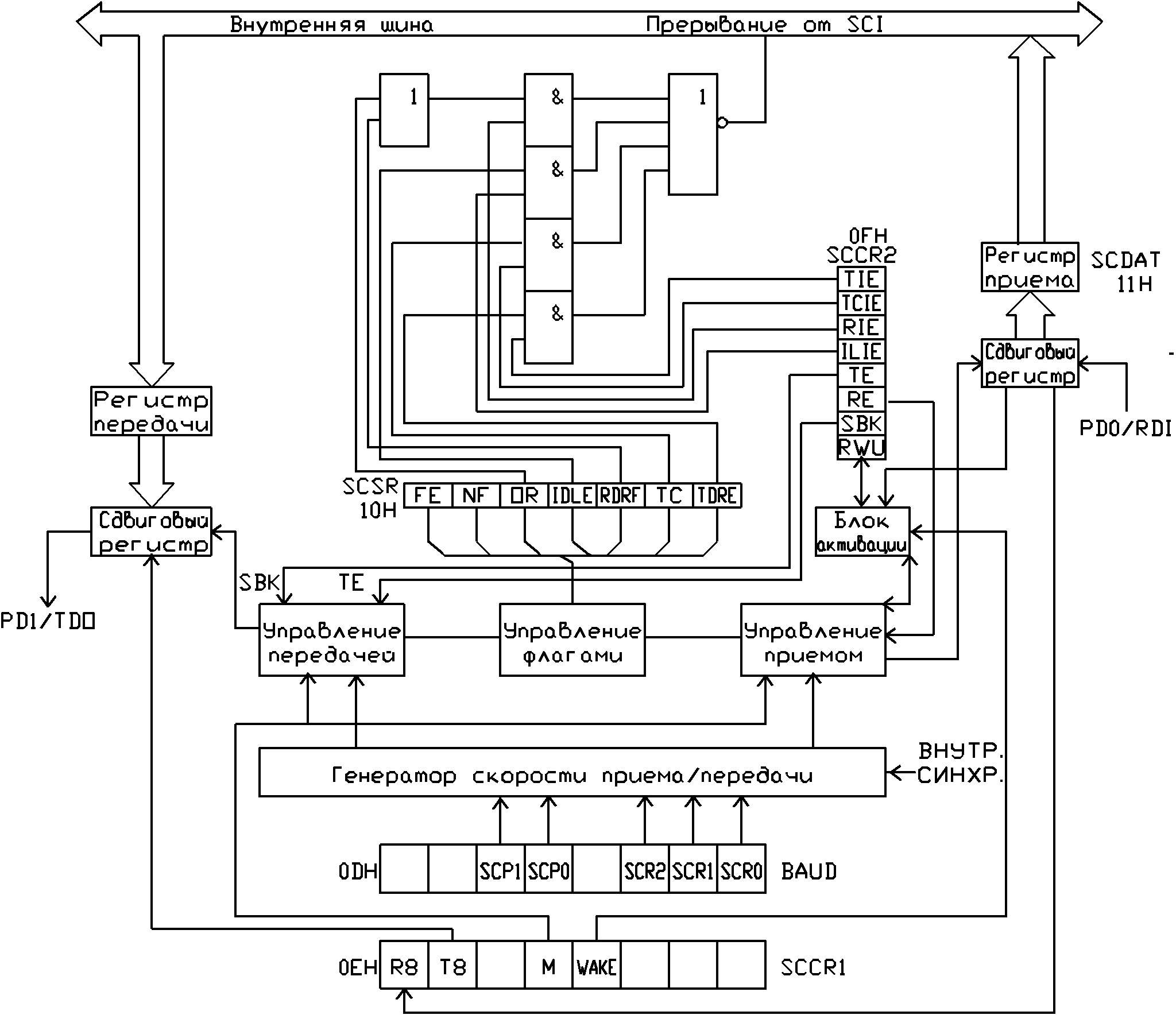 · возможность прерываний от внешнего устройства, таймера и последовательного интерфейса;