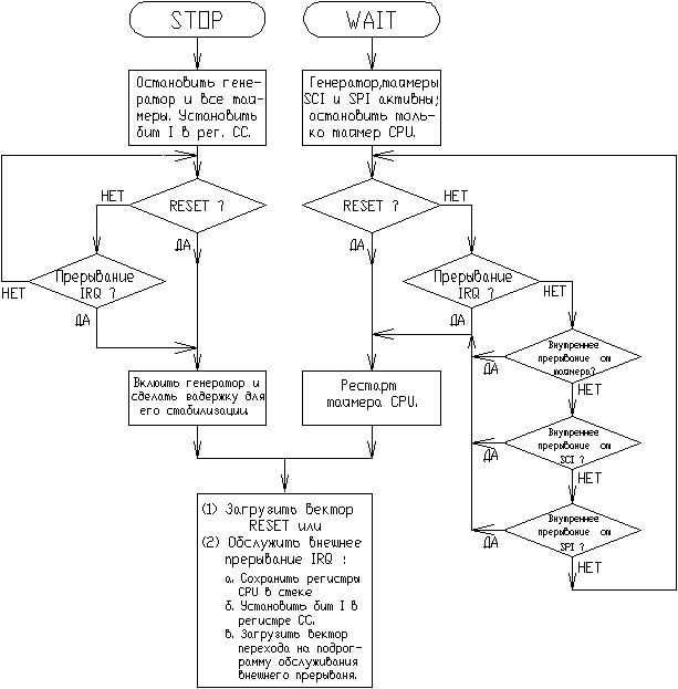 На приведенной на рис. 2-15 блок-схеме можно наглядно проследить процесс входа в режимы STOP и WAIT и условия выхода из них.