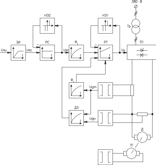 8.1рАСЧЕТНАЯ СТРУКТУРНАЯ СХЕМА КОНТУРА РЕГУЛИРОВАНИЯ СКОРОСТИ