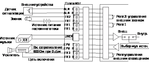 1.5.11 ПОДКЛЮЧЕНИЕ ВНЕШНЕГО УСТРОЙСТВА ОПОВЕЩЕНИЯ