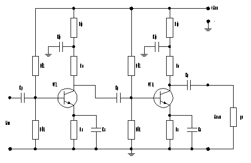 В качестве принципиальной схемы усилителя выберем схему, состоящую из N каскадов на однотипных, активных приборах с одинаковыми параметрами. В таком случае общий коэффициент усиления будет находиться как произведение коэффициентов усиления каждого из каскадов.
