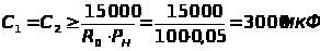 Чтобы коэффициент пульсации напряжения не превышал значения РН=0,05, он должен иметь ёмкость не менее вычисленной по формуле:
