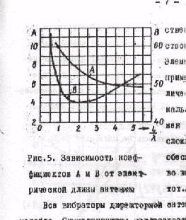 где L - длина антенны, а коэффициенты А и В, как функции L / > >, представлены на рис.5.