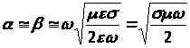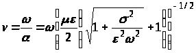Для определения степени затухания и фазовой скорости нужно вычислить и . Из уравнений (2.3) получаем