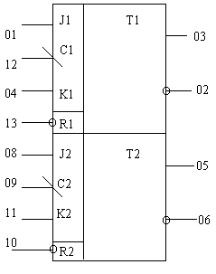 Два JK-триггера с установкой «1» и общей установкой нуля и синхронизацией |