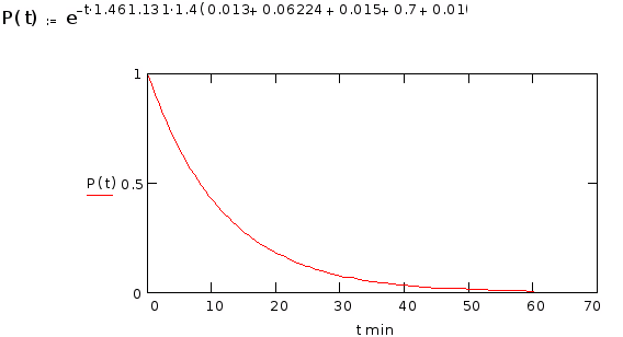 Среднее время жизни управляемого снаряда не превышает 1...2 минут и следовательно значение P(0.033) = 0.844, что вполне удовлетворяет техническим условиям.
