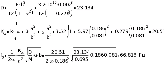 Подставляя значения параметров в формулу рассчитываем значение собственной частоты: