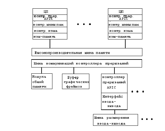Блоки APIC дополнительно увеличивают расширяемость за счет разгрузки шины памяти от трафика прерываний,а также разделения между процессорами нагрузки по обработке прерываний.