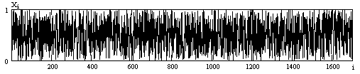 Задание 3. Получить выборку БСВ объемом n = 1700, По этой выборке проверить свойства независимости полученной случайной последовательности (вычислить 10 значений коэффициента корреляции).