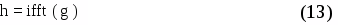 Далее применяется фильтрация нижних частот (12) и перевод сигнала во временную область (13) (обратное преобразование Фурье):
