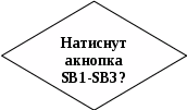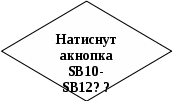 так так так так так ні ні ні ні ні V. Експлуатаційний розділ5.1 інструкція по експлуатації пристрою 5.1.1 Блок схема фрагменту програми роботи пристрою 5.1.2 Фрагмент програми роботи пристрою M1: BTFSS PORTB,0 ;Запит натиску кнопок SB1-SB3 GOTO VZVUK ;Якщо кнопка натиснута перехід на підпрограму вибору звуку BTFSS PORTB,1 ;Запит натиску кнопок SB4-SB6 GOTO VZVUK ;Якщо кнопка натиснута перехід на підпрограму вибору звуку BTFSS PORTB,2 ;Запит натиску кнопок SB7-SB9 GOTO VZVUK ;Якщо кнопка натиснута перехід на підпрограму вибору звуку