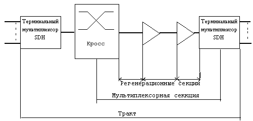 Для управления и обслуживания, сеть SDH может быть представлена в виде трех отдельных участков: