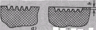 а—ребра рифления заподлицо с плоскостью изделия; 6 — ребра рифления ниже плоскости изделия.