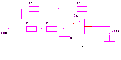В задании на проект не оговорены требования к АЧХ фильтра, поэтому тип фильтра низких частот (ФНЧ) выберем самостоятельно. Для реализации ФНЧ используем RC-фильтр типа Баттерворта 2-го порядка.