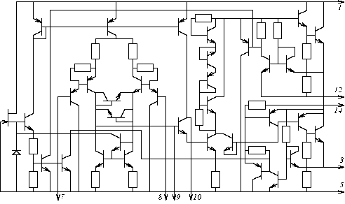 Микросхема К174ХА2 предназначена для использования в радиовещательных супергетеродинных приемниках I-IV классов с амплитудной модуляцией. Эта микросхема содержит следующие узлы: усилитель промежуточной частоты и АРУ.