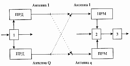 Для сравительного рассмотрения взяты: двухантенная система связи (Q=2 антенн на передающей стороне, q=2 антенн на приемной стороне) и четырехантенная система связи (Q=4 антенн на передающей стороне, q=4 антенн на приемной стороне).