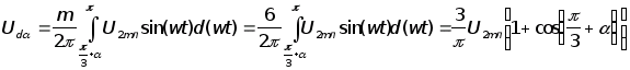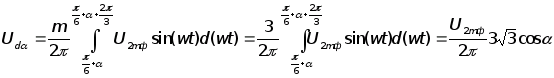Среднее значение выпрямленного напряжения (регулировочная характеристика) при работе схемы на активную нагрузку: