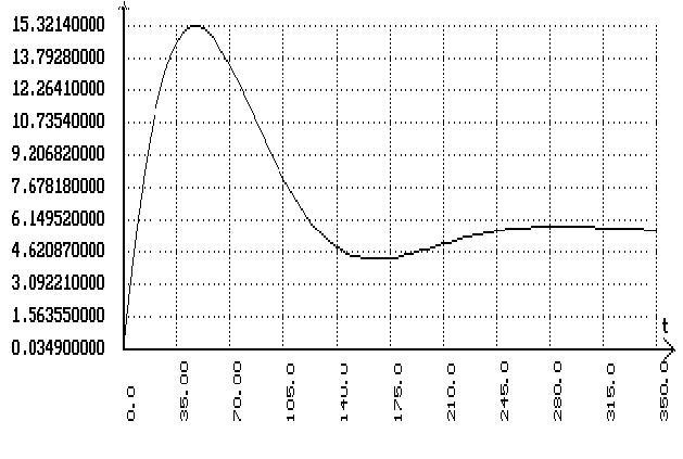 В программе SIAM с помощью смоделированной схемы комбинированной системы без компенсатора получим соответствующий переходный процесс: