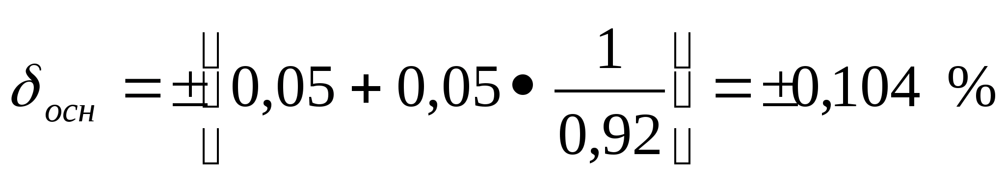 В соответствии с требованием стандартов формула основной погрешности, получившаяся выше, должна быть преобразована следующим образом: > >.