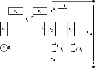 К узлам А и В подводится напряжение U>AB> – узловое, направление которого выбирается произвольно.