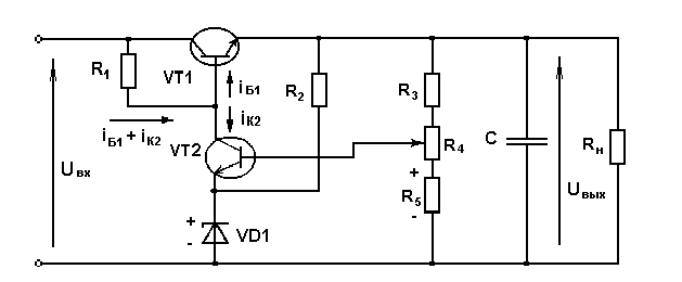 Зная напряжение питания усилителя, рассчитать транзисторный стабилизированный источник напряжения компенсационного типа.