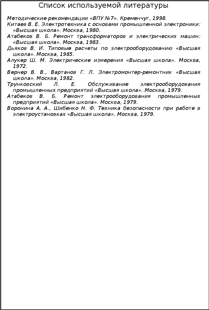 V Заключительная часть. 1. Охрана труда и техника безопасности. VI Список |