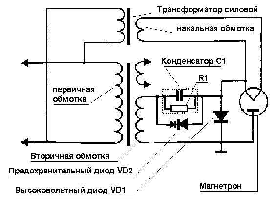 Пример принципиальной электрической схемы СВЧ печи