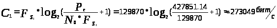 Розрахуємо пропускну можливість для варіанта аналогової передачі та двох варіантів цифрової передачі - з завадостійким кодуванням та без нього, використовуючи наступну формулу