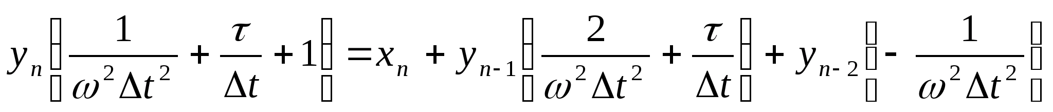 В результаті часової дискретизації заданого рівняння отримаємо рівняння цифрового фільтра. Це рівняння в загальній формі при обробці інформації в реальному масштабі часу має вигляд: