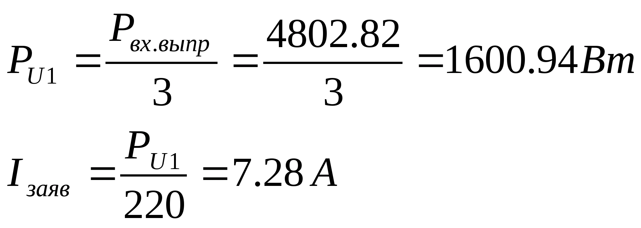 Г. Рассчитаем заявочный ток и мощность одной фазы.