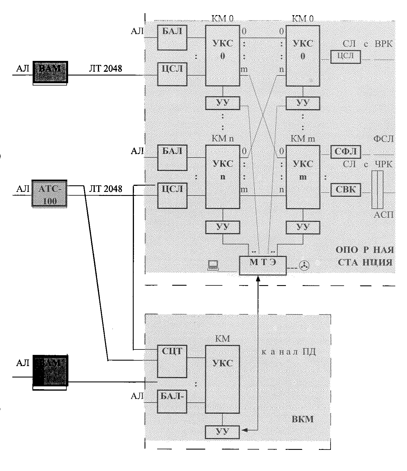 В опорную станцию или выносной коммутационный модуль могут включаться ВАМ на базе БАЛК АТС-200 и АТС-100.