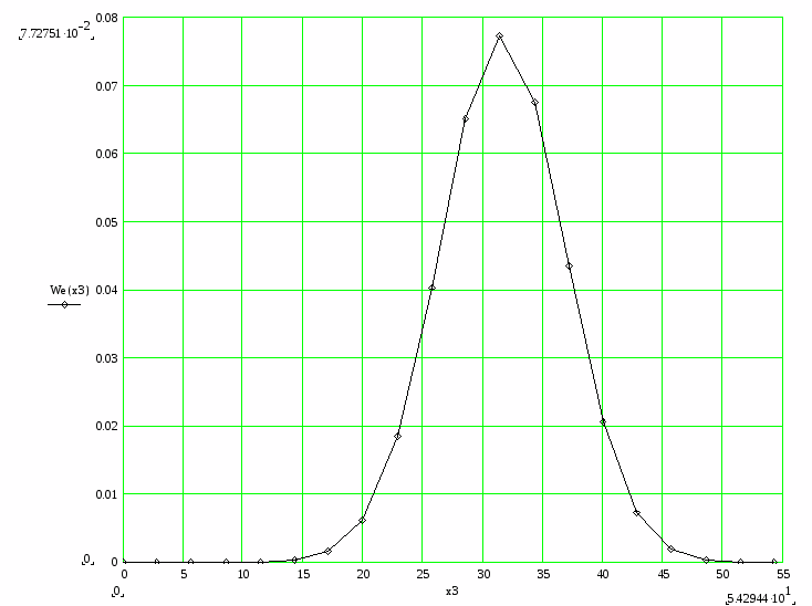 По данным таблицы 12 построим график закона распределения вероятностей на выходе декодера, рис. 14.