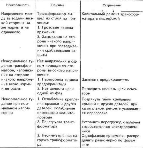 Таблица 2. 21 НЕИСПРАВНОСТИ ТРАНСФОРМАТОРОВ