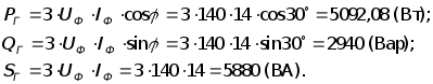 Определить мощности генератора (P, Q, S), построить треугольник мощностей.