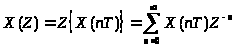 1. Прямое Z–преобразование X(Z) последовательность X(nT) определяется следующей формулой: