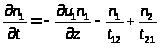 Тут u>1,2> – скорость потока электронов в верхней и нижней долинах соответственно; t>12> и t> 21> – время перехода из нижней долины в верхнюю и из верхней в нижнюю соответственно. Уравнение сохранения энергии для нижней долины можно переписать следующим образом: