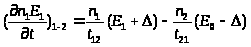 В данной формуле E>1> – средняя энергия электронов в нижней долине; а индекс «ст» означает скорость изменения энергии электрона в нижней долине вследствие столкновения с фононами; индекс «1-2» означает скорость изменения энергии вследствие междолинного перехода; n>1>u> 1>E – скорость разогрева электронов полем.