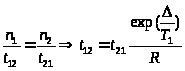 Из принципа детального равновесия, т.е. условия равенства скоростей перехода, должно выполняться: