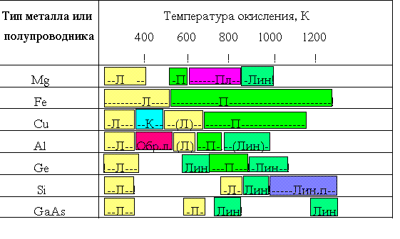 Ïðè èçó÷åíèè ýêñïåðèìåíòàëüíûõ äàííûõ ïî êèíåòèêå ïðîöåññà òåðìè÷åñêîãî îêèñëåíèÿ ìåòàëëîâ è ïîëóïðîâîäíèêîâ â çàâèñèìîñòè îò òåìïåðàòóðû (ñì. òàáëèöó 1), ìîæíî îòìåòèòü ñëåäóþùåå: