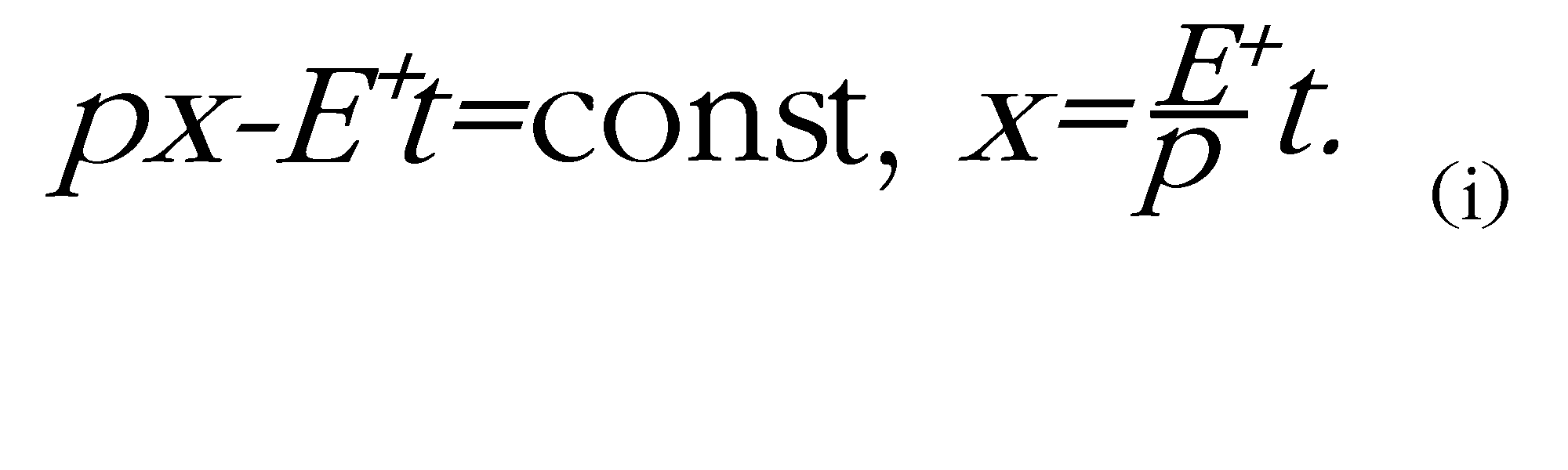 Пусть частица с массой m движется вдоль положительного направления х с положительным импульсом р и положительной энергией Е+= (рс)2+(mс2)2. Ее траектория показана на рис.1. Волновая функция частицы имеет вид